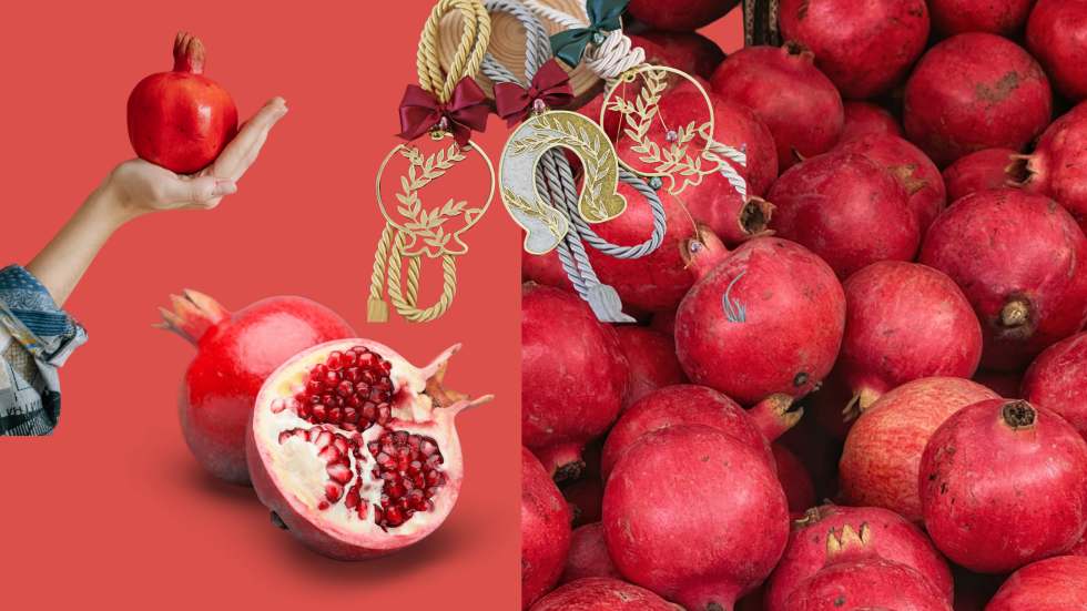 On the first day of the New Year, many Greek homes welcome the year ahead by breaking open a pomegranate for good luck. This beautiful ritual is believed to bring health, prosperity, and abundance to the household. It is also common in Greece to exchange pomegranates (ρόδι), often made of metal, glass, or ceramic, as New Year’s gifts. These symbolic objects are known as γούρια; charms meant to bring good fortune for the year to come.